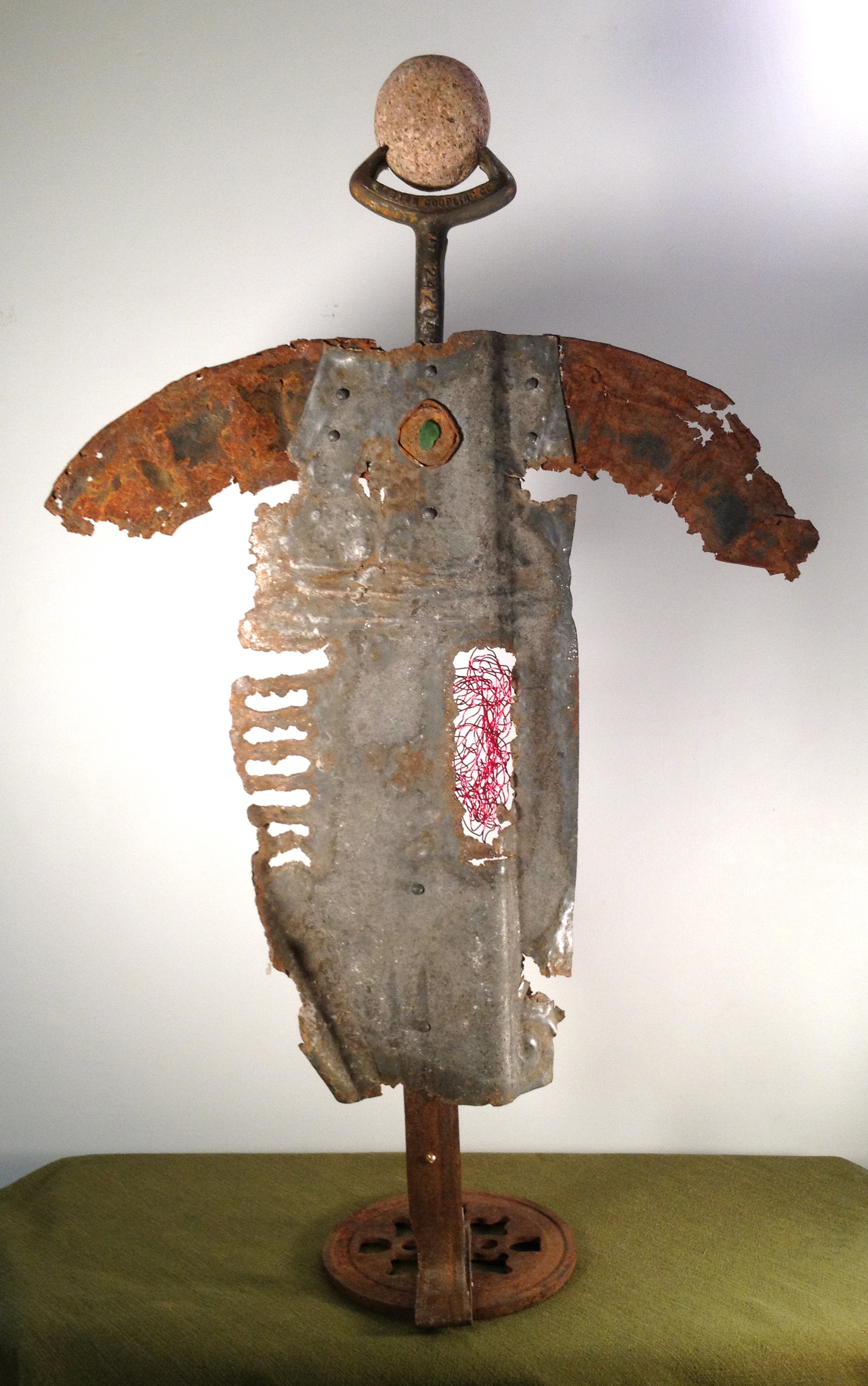 Wood sculpture, metal and mixed media assemblage, collage