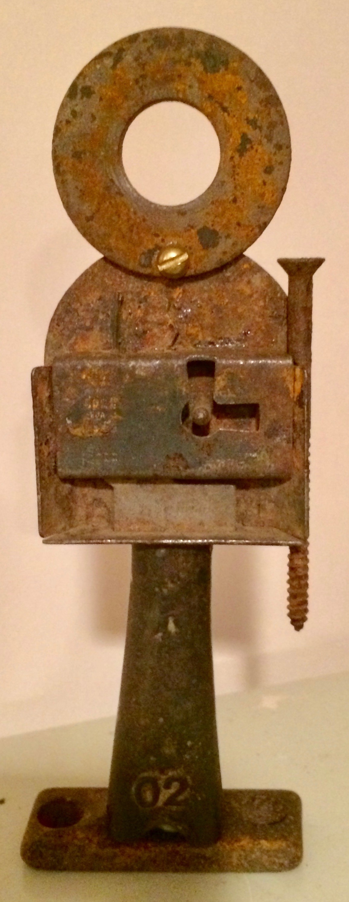 Wood sculpture, metal and mixed media assemblage, collage