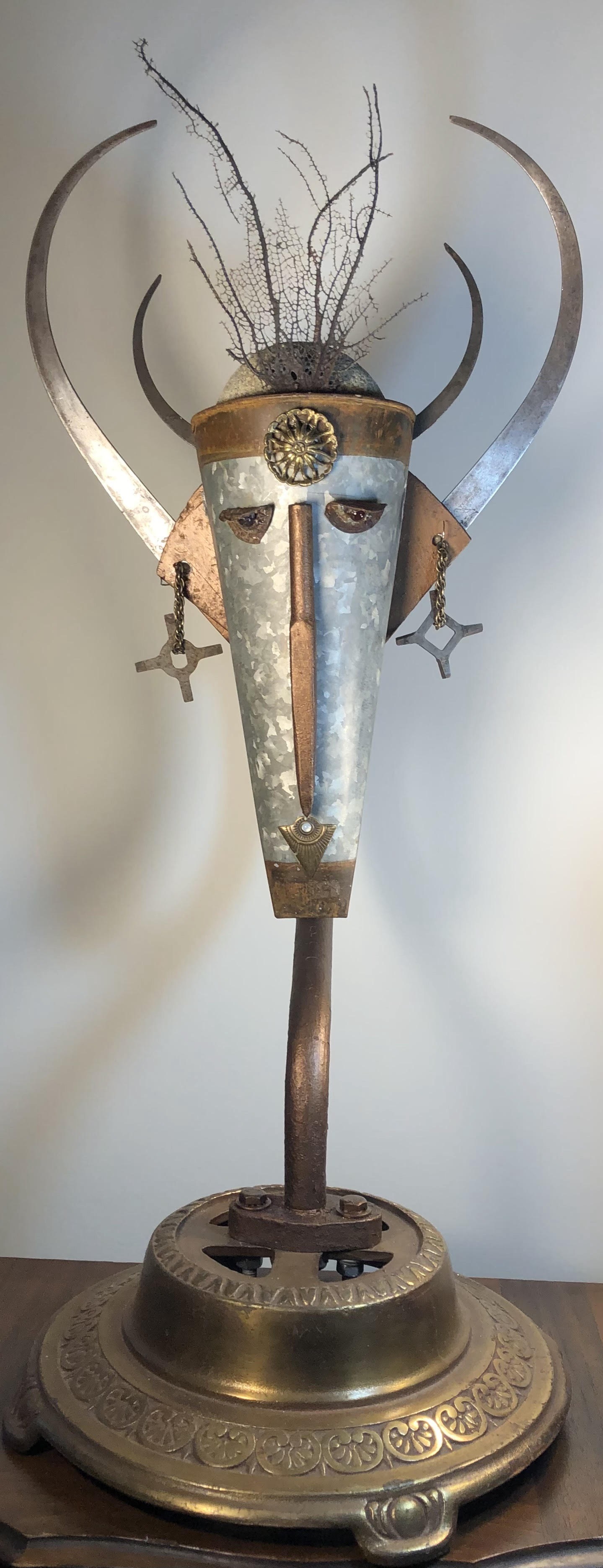 Wood sculpture, metal and mixed media assemblage, collage