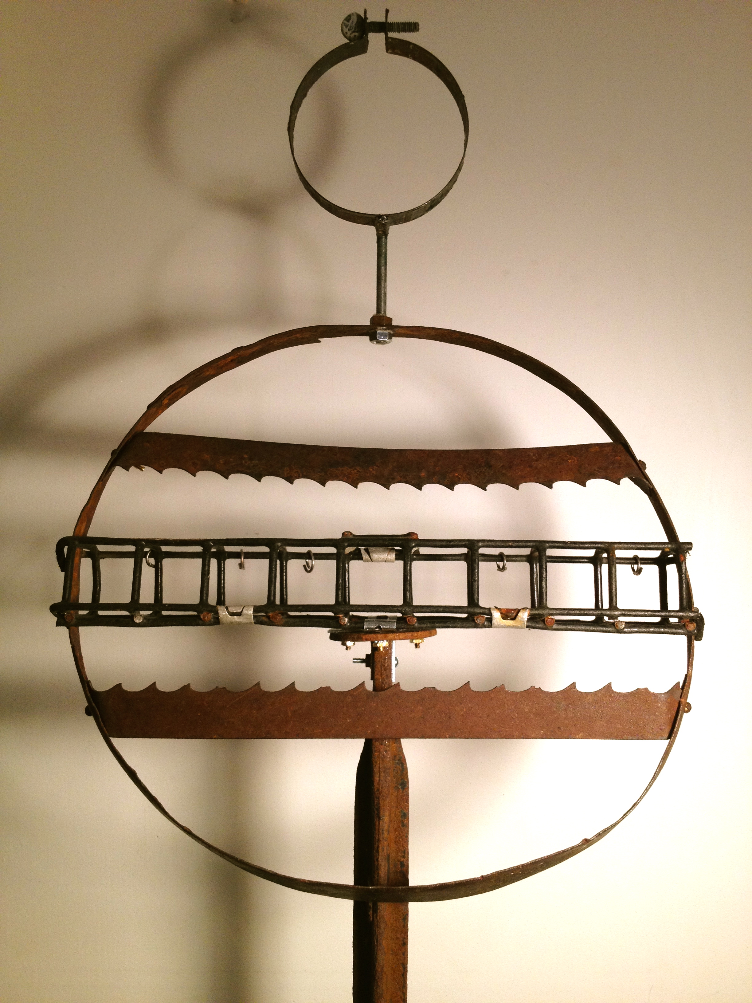 Wood sculpture, metal and mixed media assemblage, collage