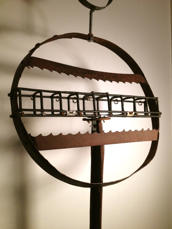 Wood sculpture, metal and mixed media assemblage, collage