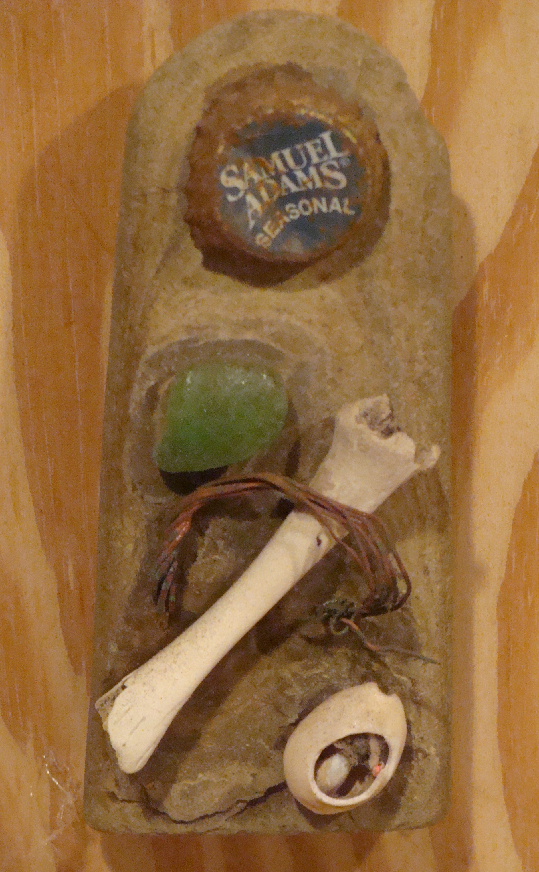 Wood sculpture, metal and mixed media assemblage, collage