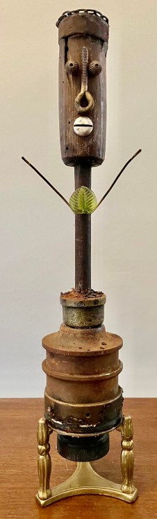 Wood sculpture, metal and mixed media assemblage, collage