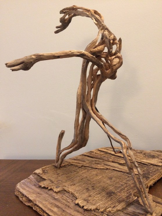 Wood sculpture, metal and mixed media assemblage, collage