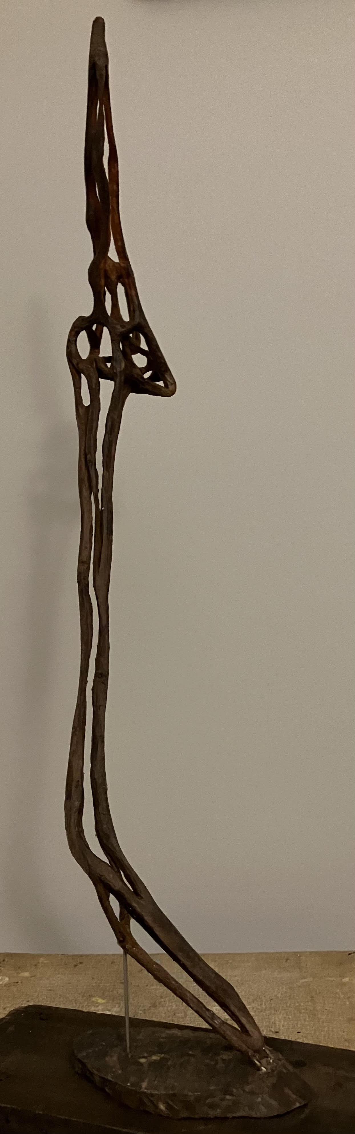 Wood sculpture, metal and mixed media assemblage, collage